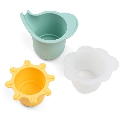 Amusez-vous avec nos jouets Elphee pour jouer et empiler l'eau, idéaux pour les activités nautiques intérieures et extérieures. Cela comprend un bleu en forme d'Elphée, un blanc semi-transparent en forme de nuvol avec des forats en bas et un got groc en forme de soleil qui est en haut et qui est tanca.